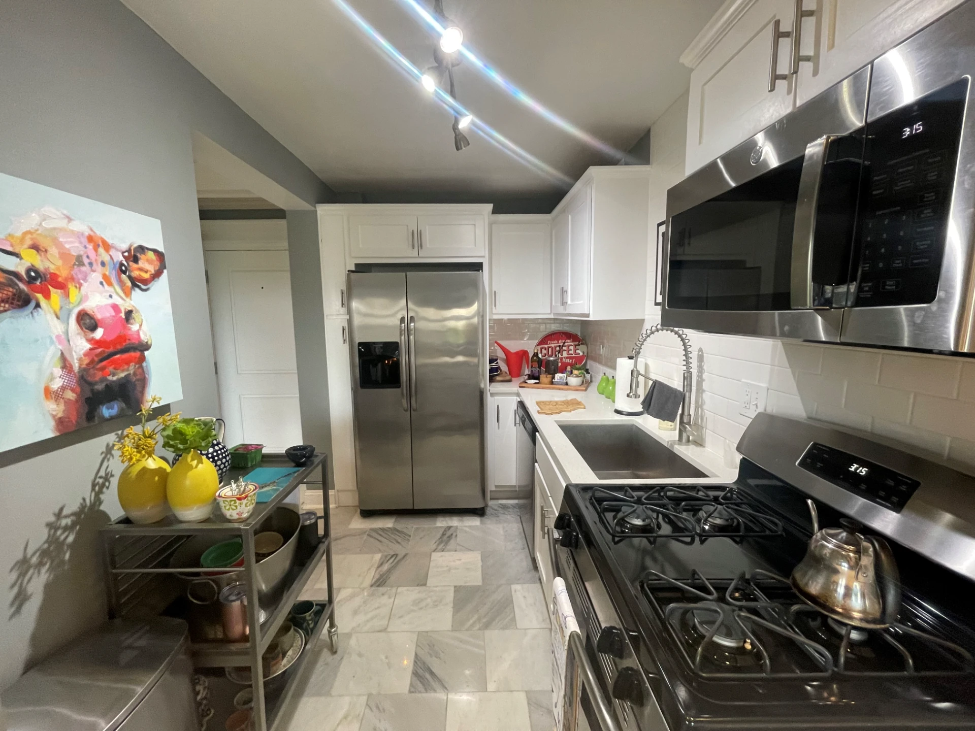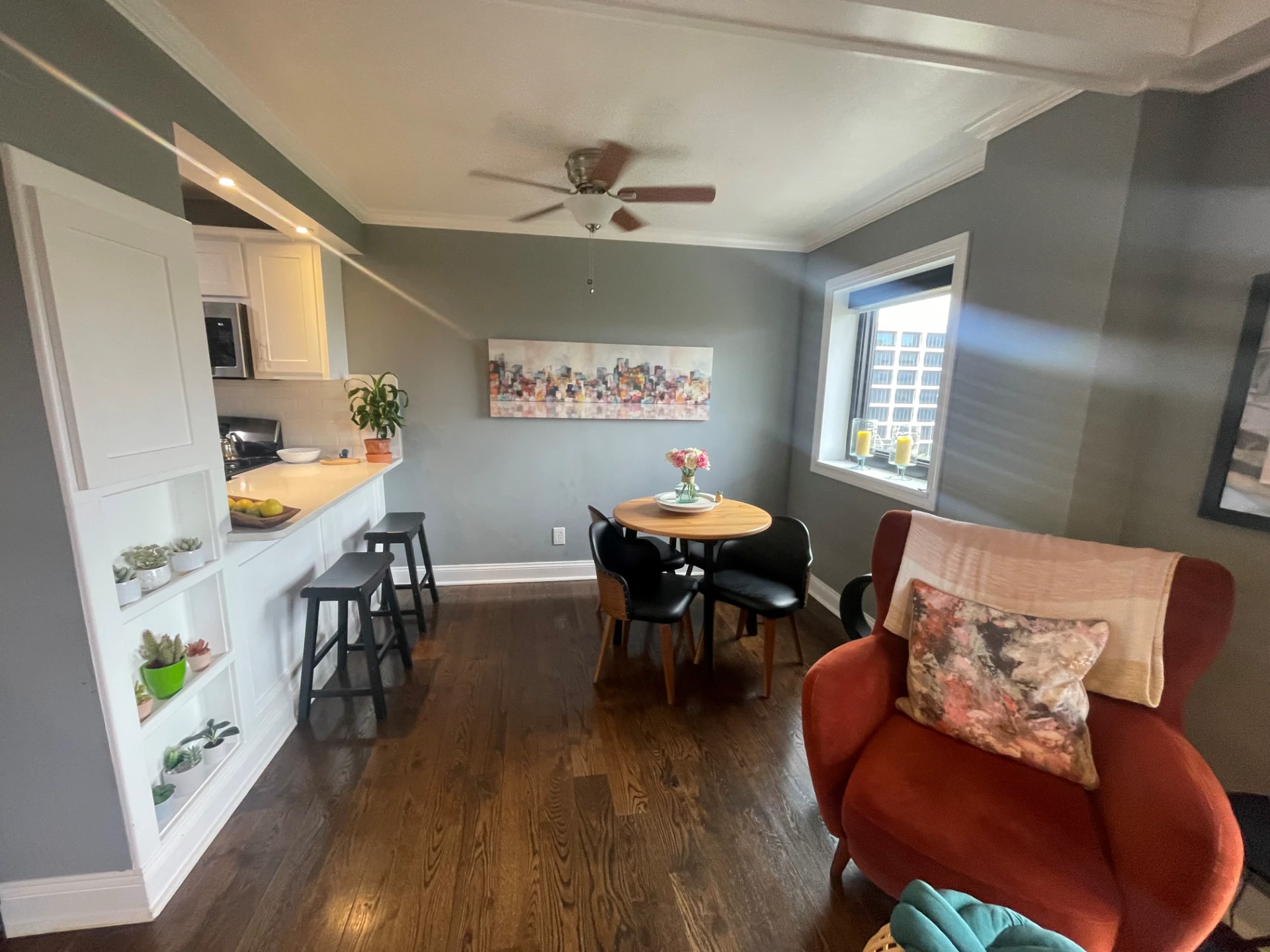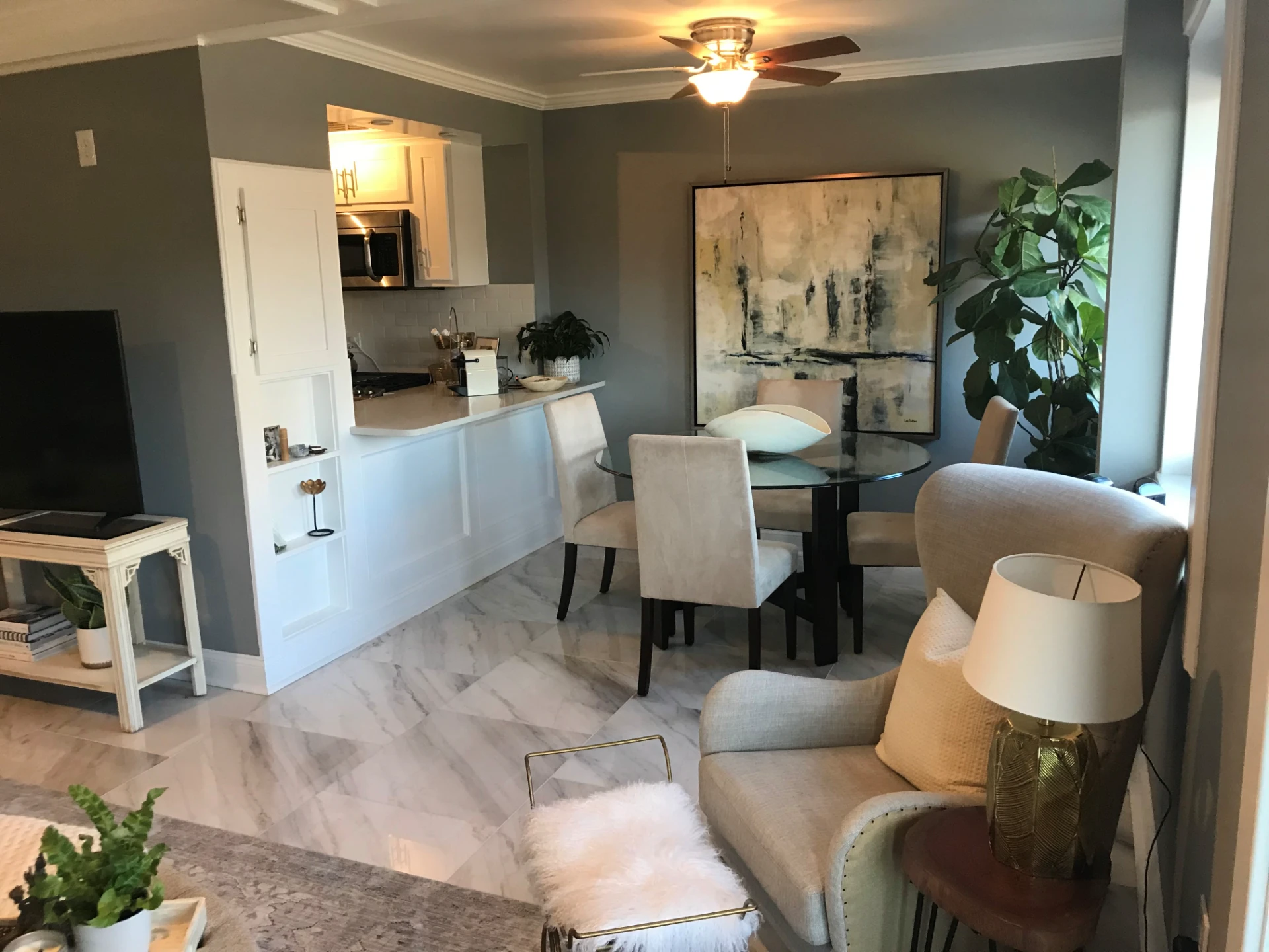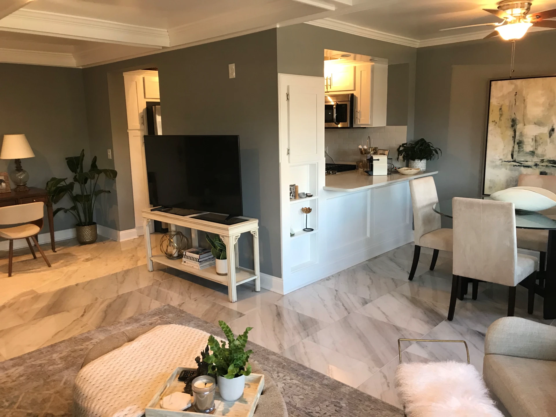 Residents are responsible only for electric and internet, while water, trash, and gas (serving the water heater, dryer, and stovetop /range) are included. Renovated interiors feature stainless steel appliances, quartz countertops, hardwood or tile flooring, crown molding throughout, and in-unit washer and dryers. Additional amenities include a fitness center, keyless entry system for building and apartment access, central heating and cooling, and wiring for Google Fiber.